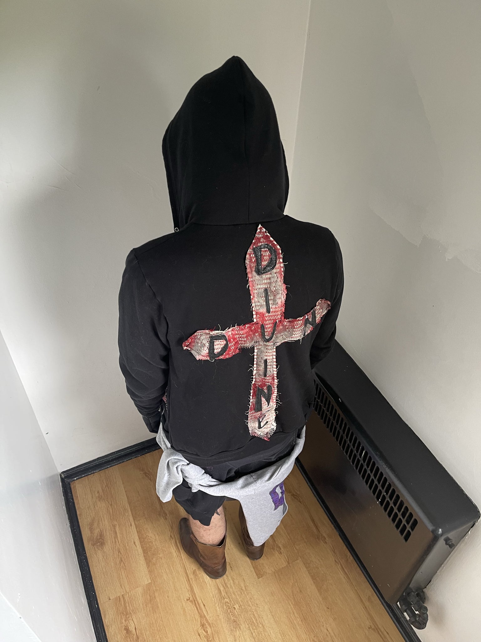 - TOPSTITCH CROSS , WITH BLACK LEATHERS "DIVINE" "DVN" ACROSS & DOWN.